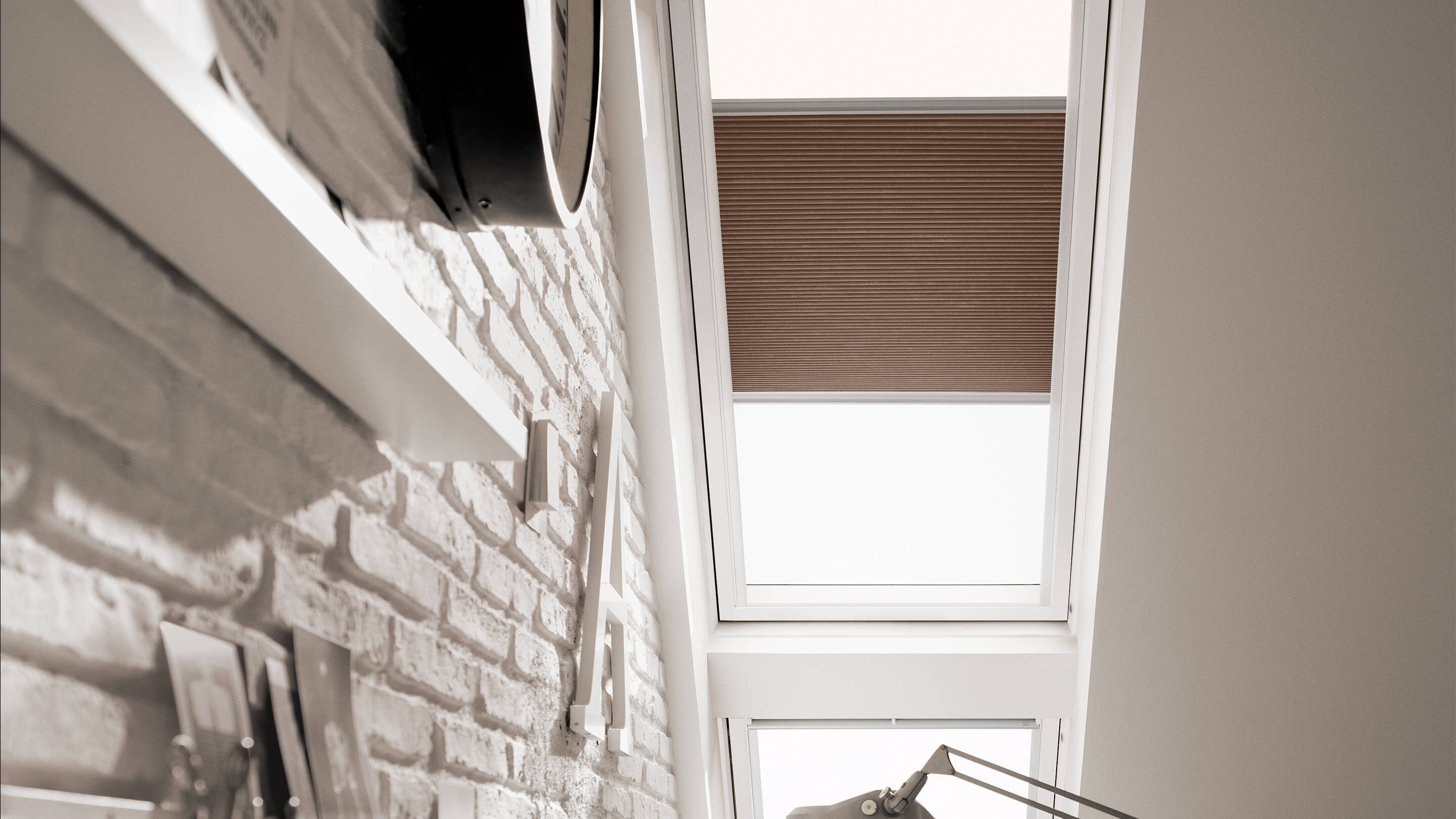 As cortinas plissadas de escurecimento da VELUX, para janelas de telhado plano, escurecem a sala e proporcionam um ótimo isolamento.