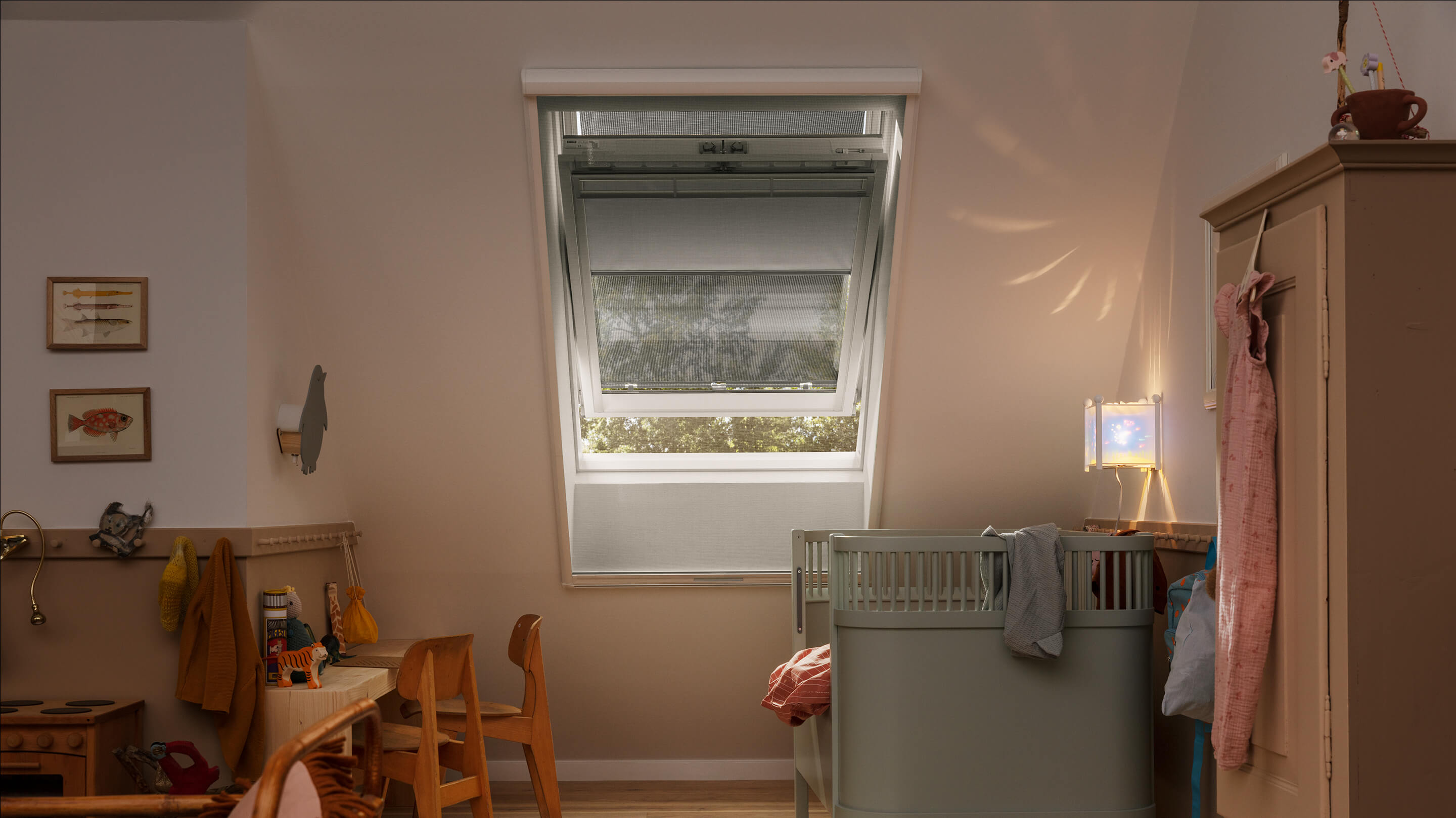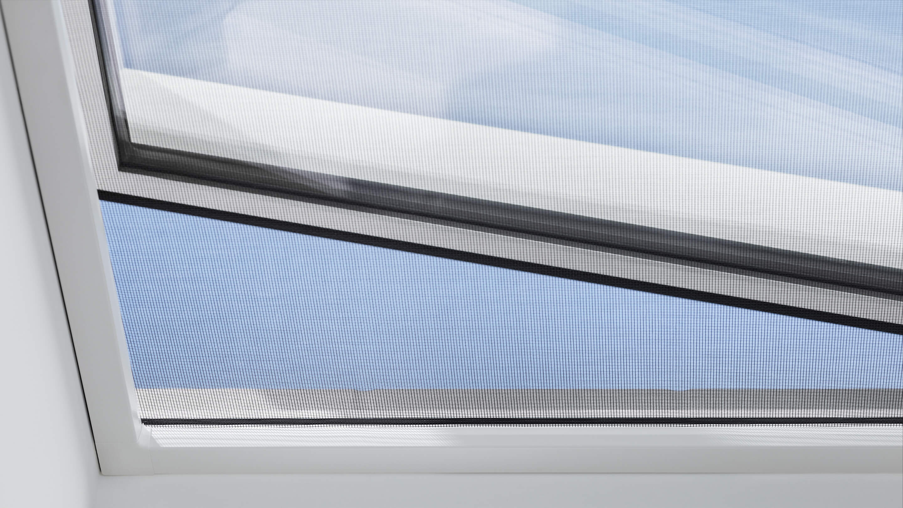 A rede mosquiteira VELUX permite desfrutar da paisagem e do ar fresco sem deixar entrar insetos.